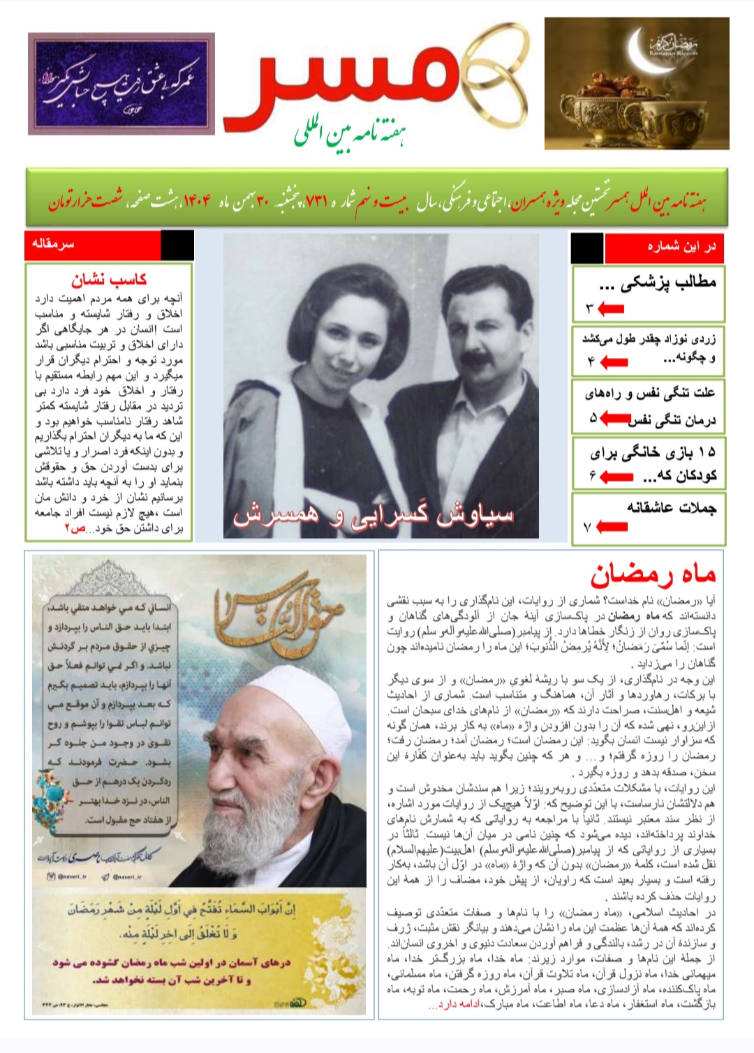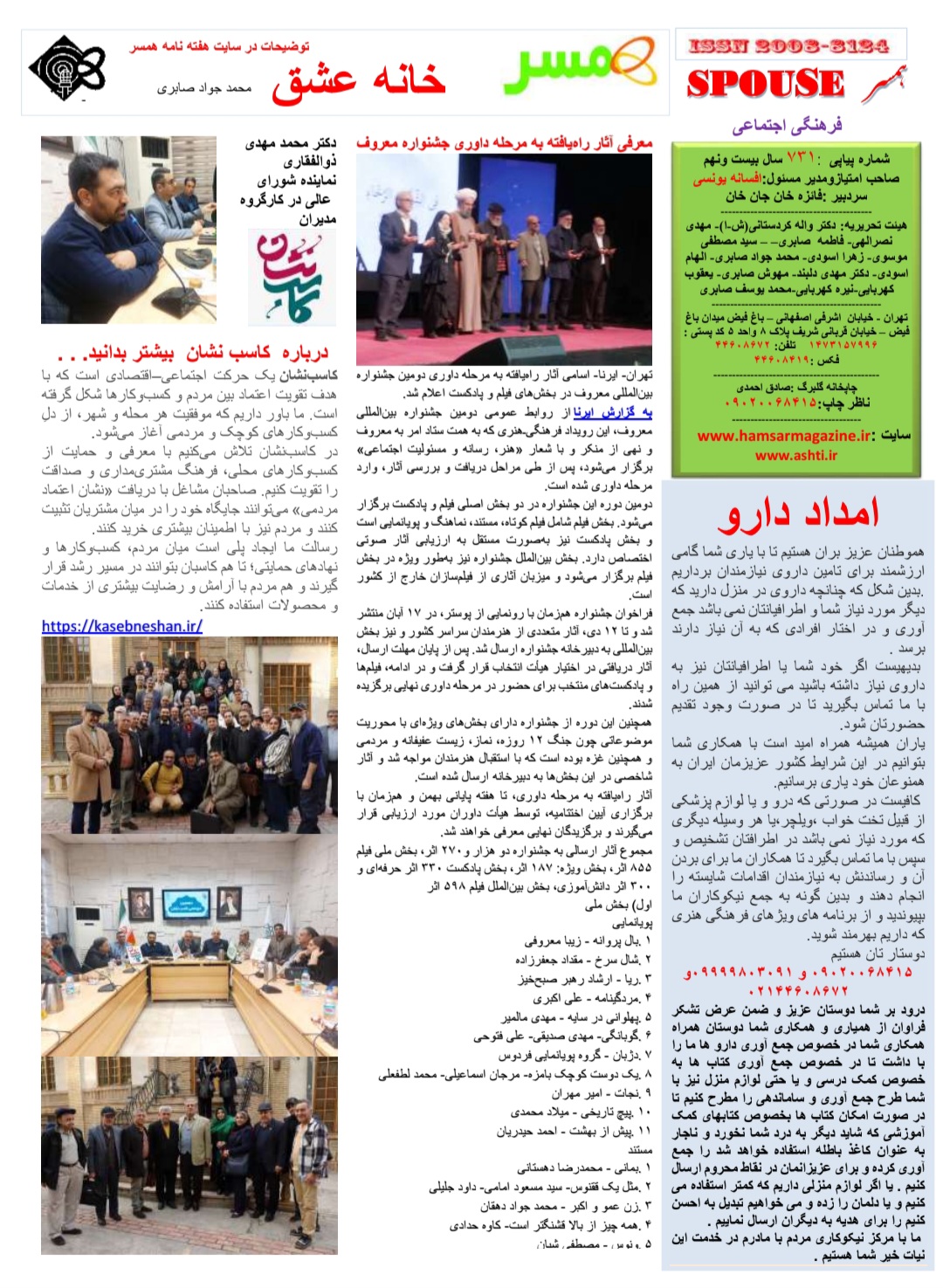 کزارشی از کاسب نشان در هفته نامه بین المللی همسر شماره 731